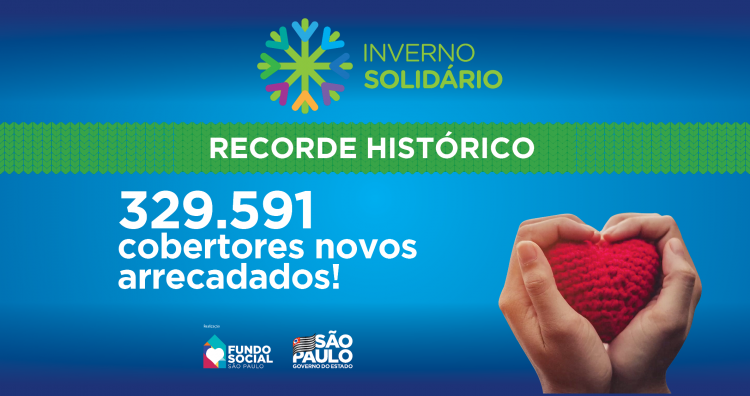 A arrecadação de cobertores superou em mais de três vezes a meta de 100 mil peças estipulada pelo Governador João Doria quando do lançamento do evento, em junho.