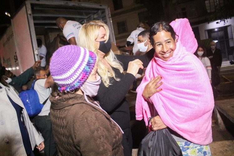 Na noite de hoje (27) a Primeira-Dama e Presidente do Fundo Social, Bia Doria, distribuiu 600 mochilas para pessoas em situação de rua, na Praça Marechal Deodoro no centro da capital. Cada um recebeu uma mochila contendo cobertor e moletom novos, máscaras descartáveis, álcool em gel e água.